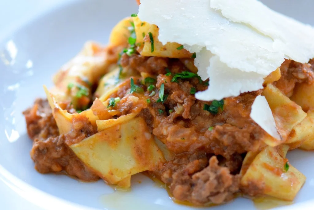This is the dish I turn to any time I need something comforting or heartwarming. It’s rich, decadent and perfect for large groups! There’s nothing better than a classic Bolognese and the key to this pasta is a slow simmer and a lot of red wine. Don’t leave out the tomato paste either – that’s what gives it the rich, rounded quality. The best thing about Bolognese is you can make it as fine or as chunky a sauce as you like – it all depends how big a veggie mood you’re in – just slice the onion/carrots/celery accordingly!