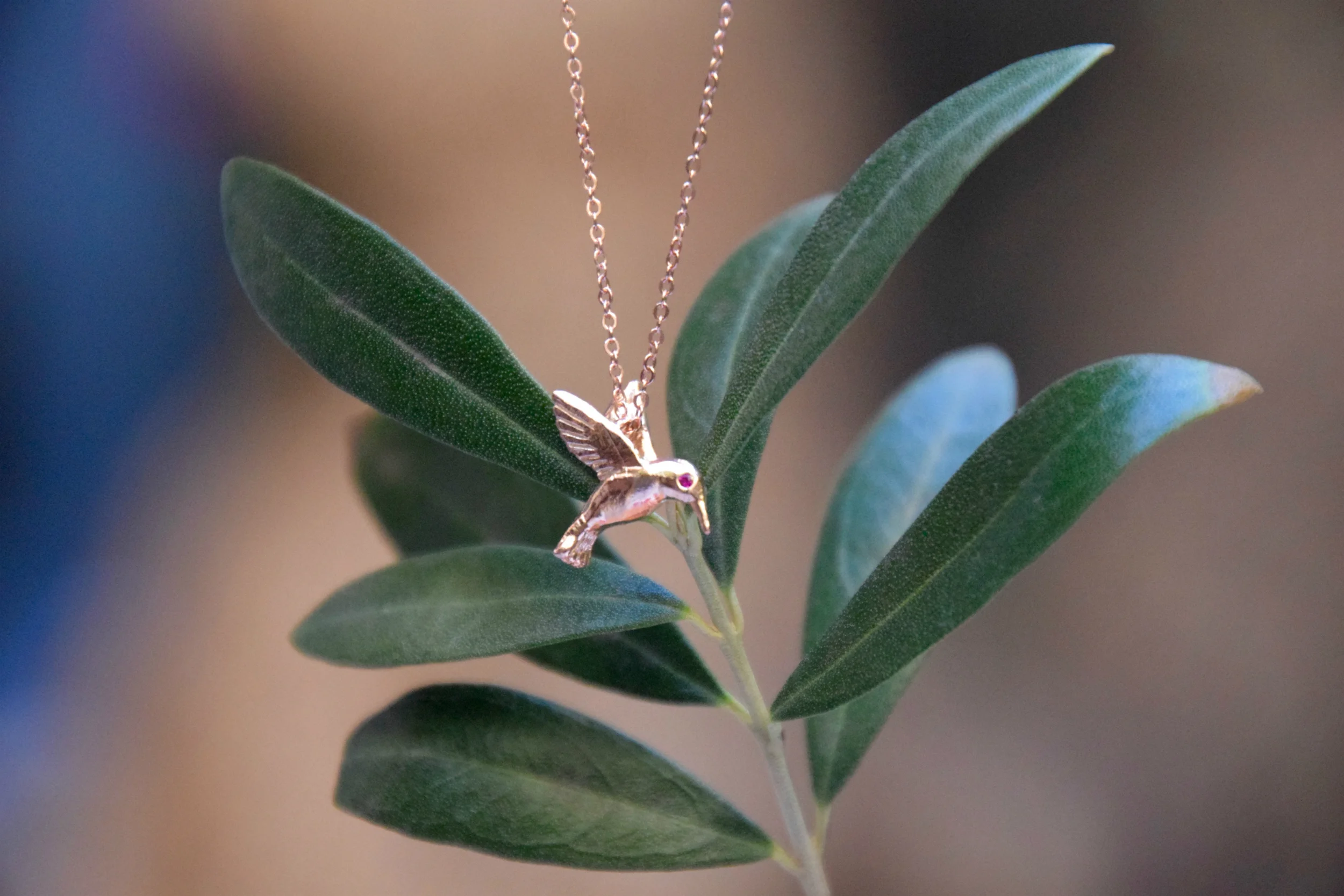 Our Giving Bird Necklaces are unique & gorgeous hummingbird charms set on a fine, delicate chain. Each hummingbird features a different colored diamond or sapphire stone set into its eyes. The color of the stone you choose represents a charity and 20% of the retail price of the necklace will go to benefit that charity!